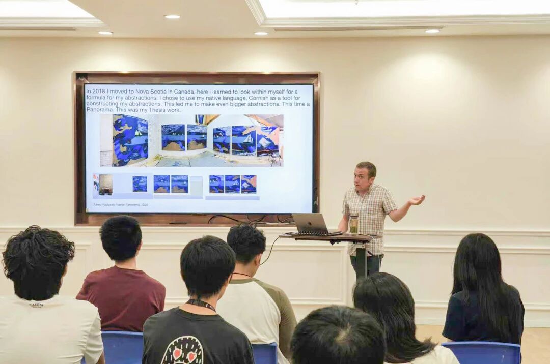 During the lecture, Tresidder deeply shared his personal creative journey in art and systematically elaborated on his creative practice centered on Celtic cultural imagery. Through his in-depth discussion on the integrated expression of text and color, he brought thought-provoking reflections and inspiration to the students present. Furthermore, he provided a detailed introduction to the structure and application process of international artist residency programs, offering students clear pathways and valuable opportunities to broaden their global artistic horizons and engage in cross-cultural practices.