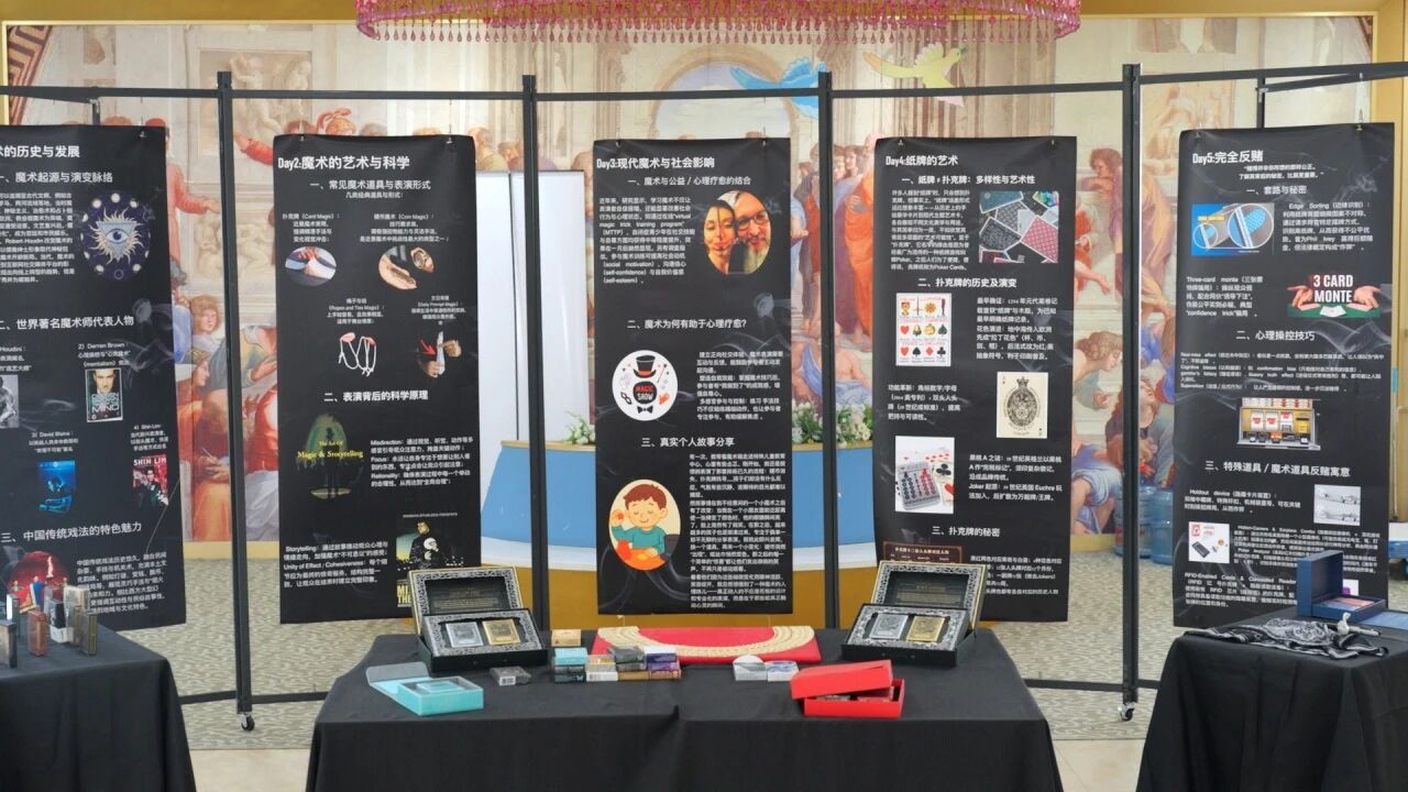 From October 13th to 17th, 2025, a unique magic-themed exhibition was held in the atrium on the fourth floor of the high school section of SSBS. This event was planned by Zhu Yuxuan from Class 12-6, with the theme of "Breaking Stereotypes · Witnessing Miracles". It aimed to change people's preconceptions about playing cards by showcasing the intricate beauty and artistry of card tricks and magic.