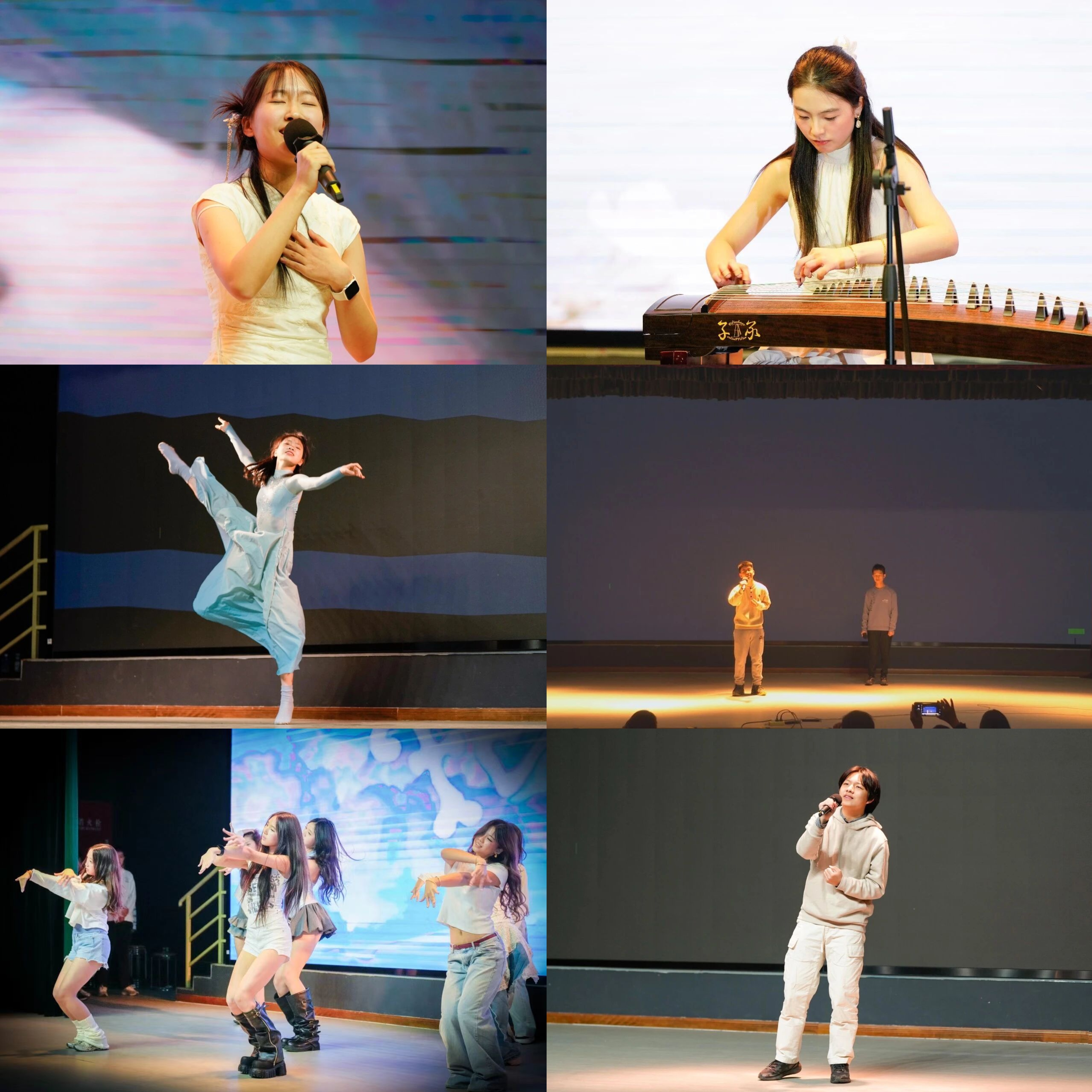 A rich tapestry of musical styles collided and blended on stage, radiating unique charm. Two senior high school students presented a piano medley, skillfully connecting the Xinjiang-style charm of Dance of Spring with the revolutionary passion of Chopin’s Revolutionary Etude—a captivating dialogue between Eastern and Western art. This was followed by a medley of classic pop hits, whose familiar melodies struck a chord with the entire audience. A guzheng solo of Spring Comes to the Xiang River painted a vivid picture of spring through flowing tunes, while the modern dance Shaoxing Road led the audience on a stroll through the quiet streets of the city with graceful movements. Several students took turns performing songs such as Practicing Love and Back-to-Back Hug, depicting emotional depth with delicate expressions, and the K-pop dance group returned to ignite the stage once more with Famous. Additionally, an excerpt from the musical My Bucket List prompted reflections on the meaning of life with its narrative-driven vocals. A group of senior high school students delivered a gentle and poignant rendition of Shostakovich’s Prelude, while a piano medley of La La Land and Legends of 1900 struck a chord about dreams of belonging.