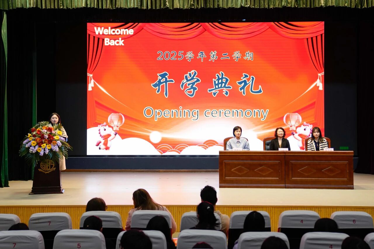 As the winter chill gives way to the warmth of spring, SSBS marked the beginning of a new semester with a vibrant Opening Ceremony. The school invited Principal Ma Danye, Deputy Principal and Teaching Director Zheng Shengjie and Teaching Director Wu Lele to attend the ceremony, and the Starriver community came together to celebrate this fresh chapter. After a warm welcome from host Yang Xiaohe, the ceremony took a solemn turn as all students rose to salute the Five-Star Red Flag.