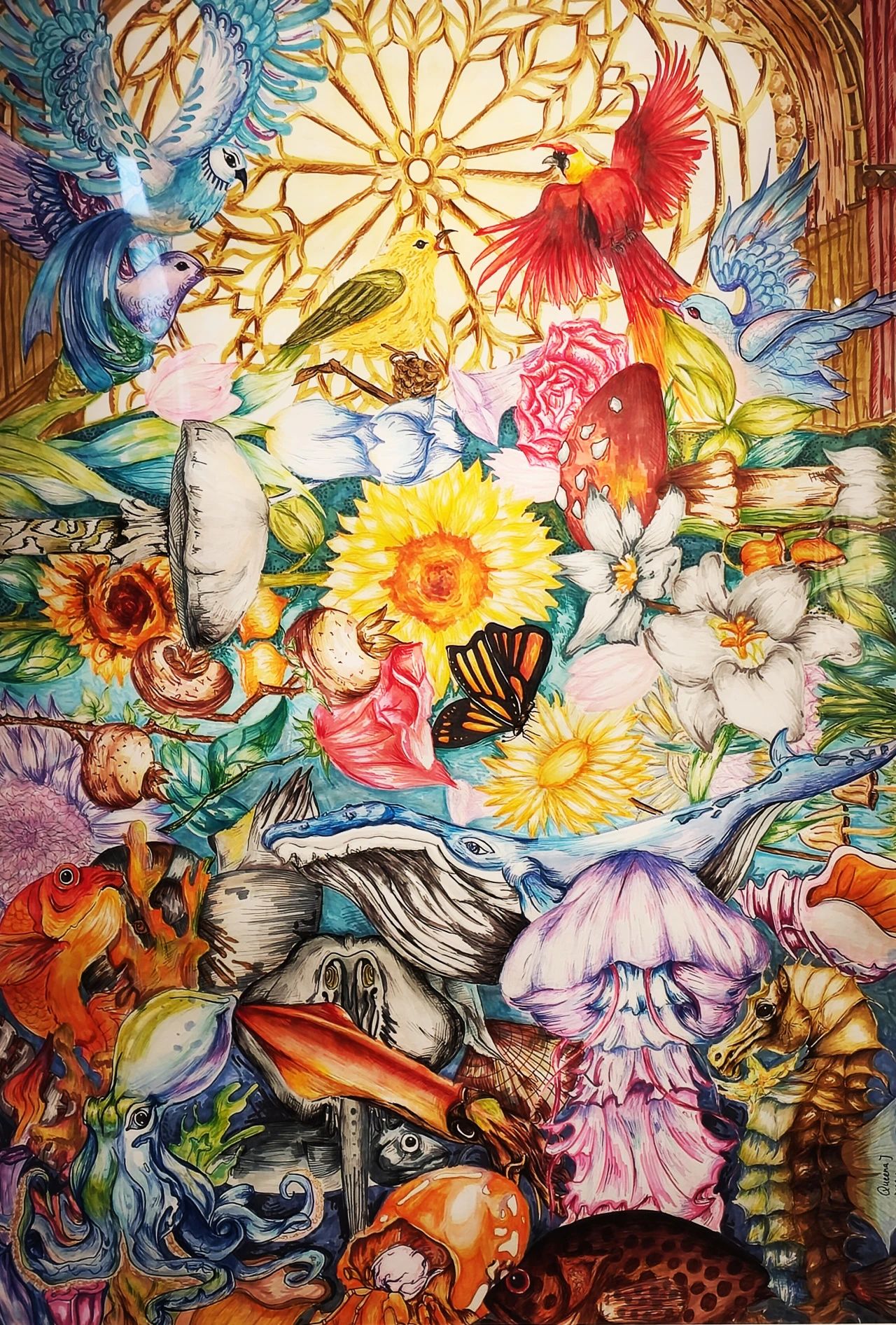 在这座喧嚣的城市中,我们常被繁忙与压力吞噬,忽略了身边潜藏的宁静与美好。本次展出的作品以自然元素与人类情感为线索,通过熊猫、花卉及动物等意象的呈现,不仅展现了生命的蓬勃力量,更深刻揭示了人与自然、文化与精神之间微妙而永恒的联结。