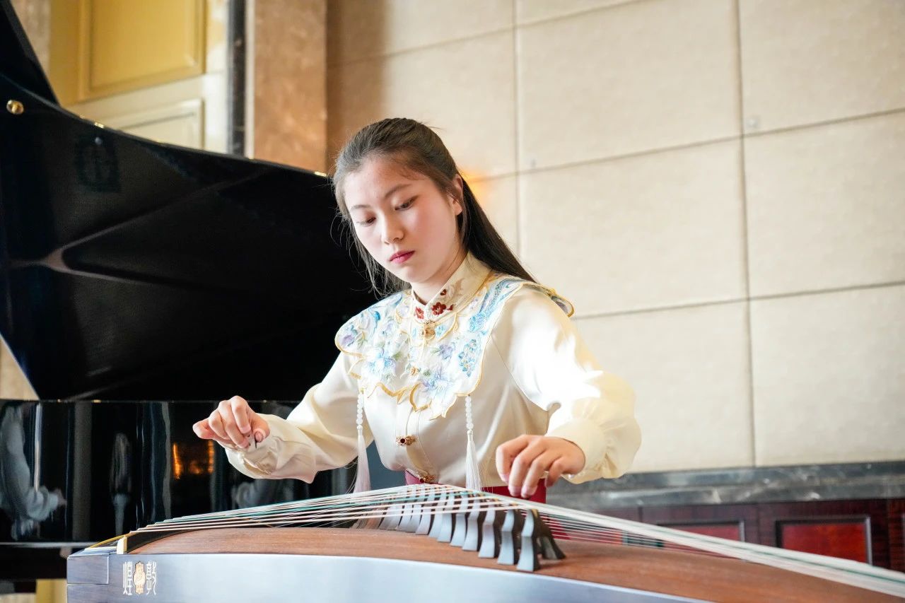 Aurora: “ Until today, I have been playing Guzheng for 3945days. It all began in the first grade when I heard a friend playing the Guzheng. The melodious sound captivated me, and I instantly decided to learn it. Day by day, through countless hours of practice, Guzheng had became an integral part of who I am. It is a unique medium through which I can express my deepest feelings and thoughts. It’s like a dear friend with whom I communicate through music. Today, I am thrilled to be here with Gladys to share this special moment with all of you. ”