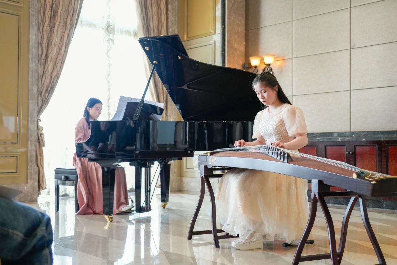 On May 24, 2025, the 118th Art Salon of SSBS, titled "萱情格调" a chamber music concert, gently commenced with the arrival of summer. This art salon was presented by two 10th-grade students from the school: Aurora (Zou Zixuan) on the guzheng and Gladys (Liu Yige) on the piano, under the overall guidance of teacher Judy Du (Ms. Judy). During the salon, Aurora and Gladys each performed four solo pieces, concluding the concert with a collaborative performance of "Farewell Letter," offering the audience a delightful auditory feast.