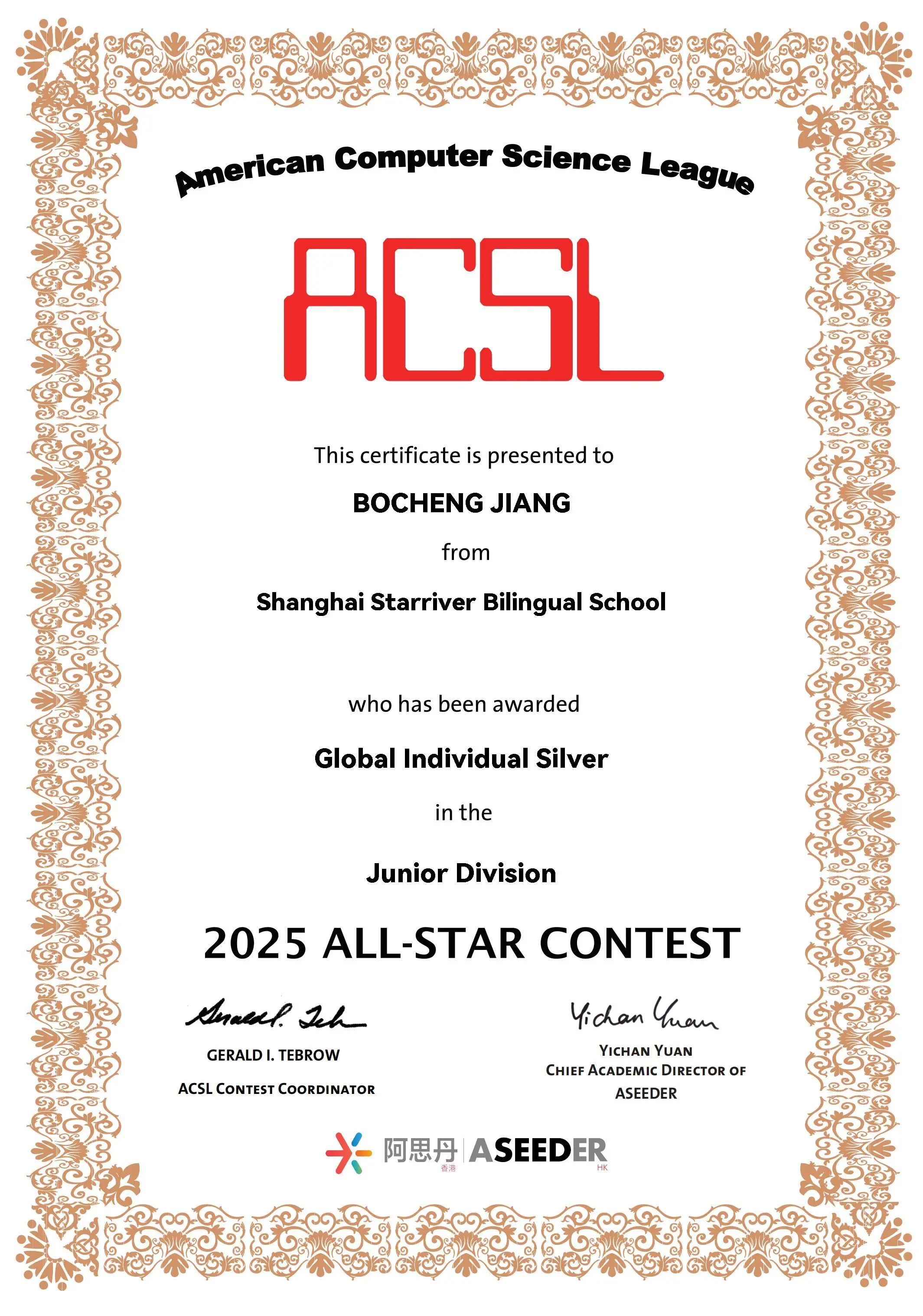 热烈祝贺星校学子在 2024-2025 赛季美国计算机科学联赛全明星赛中再创佳绩!