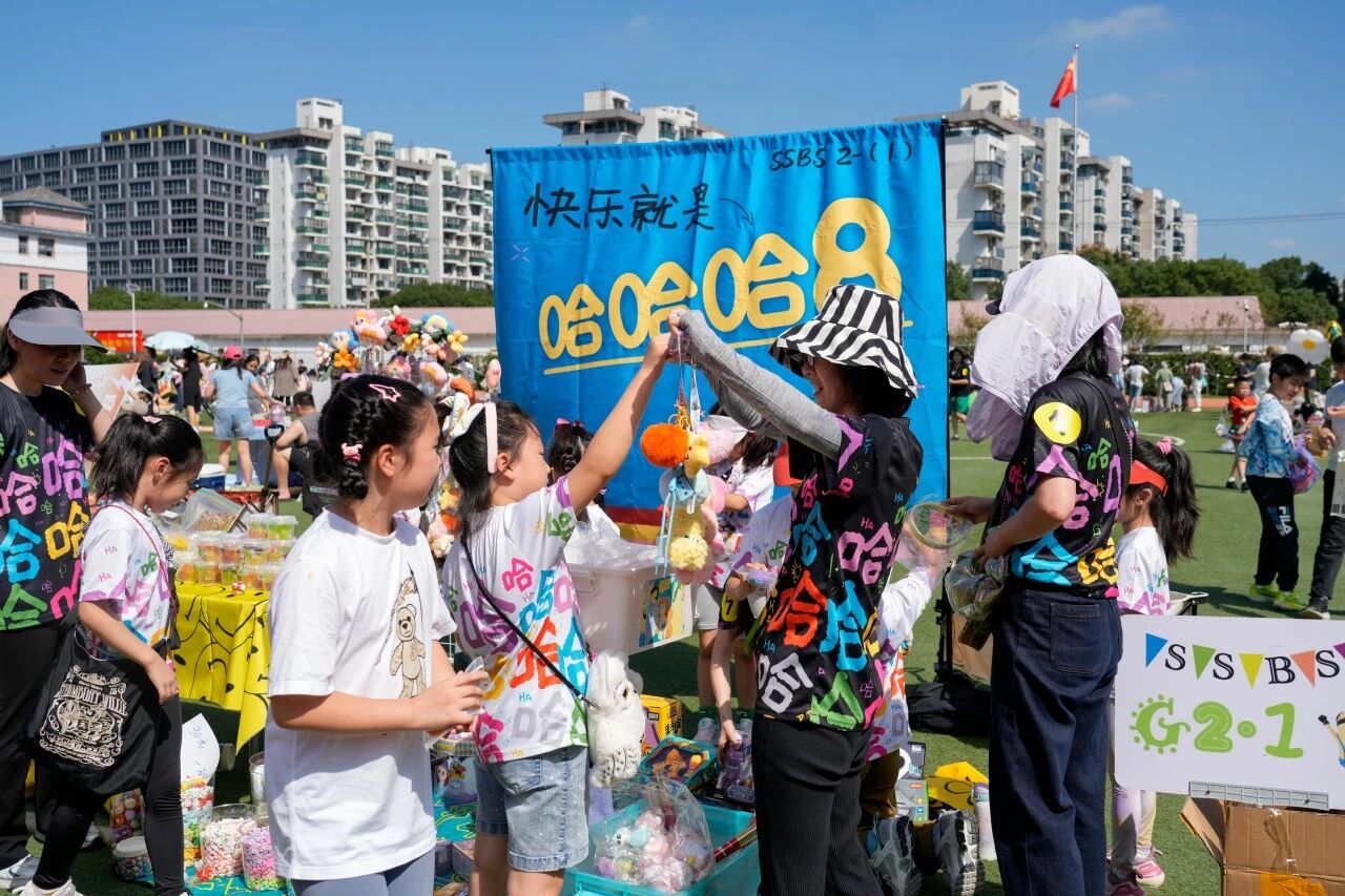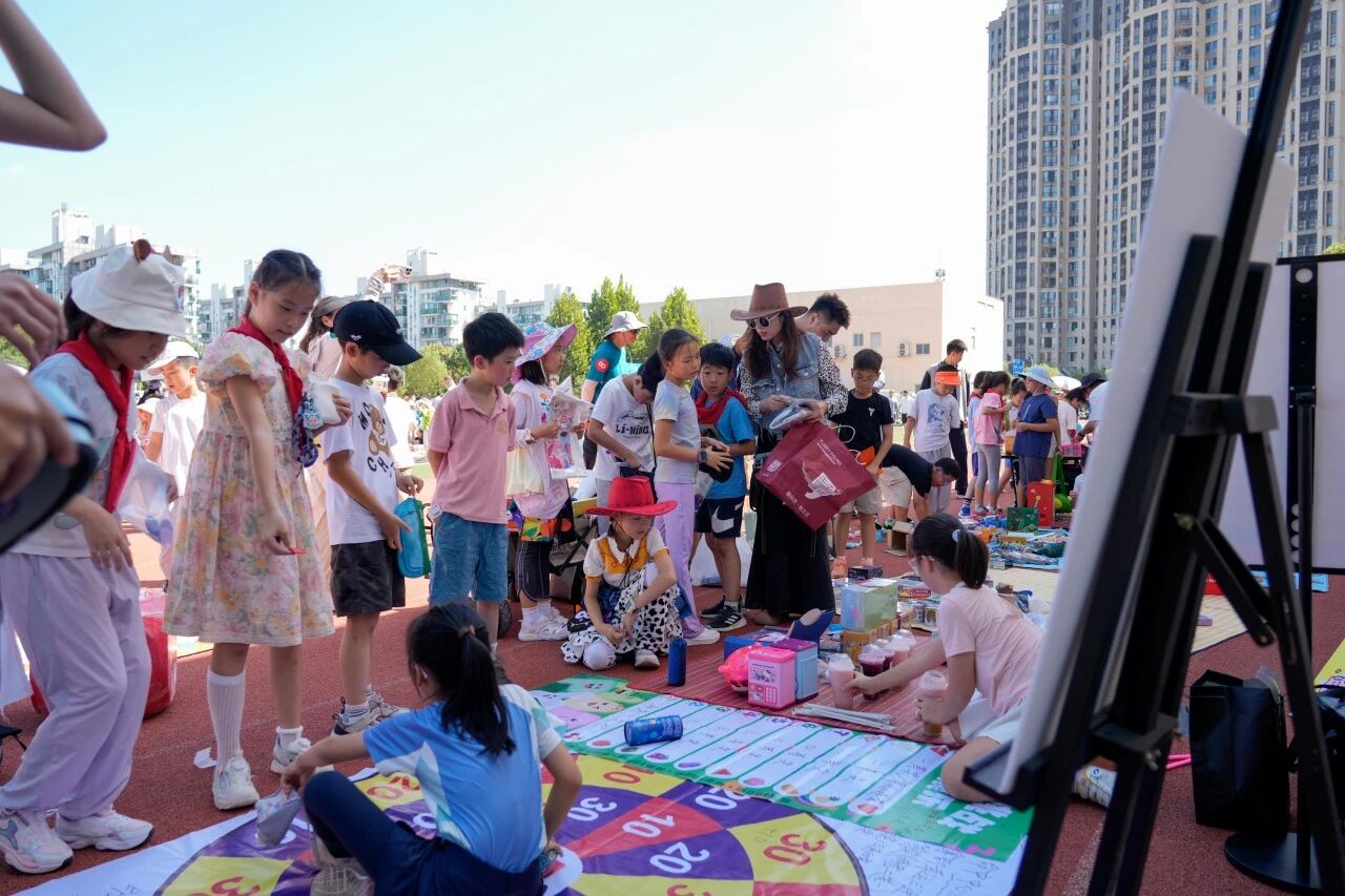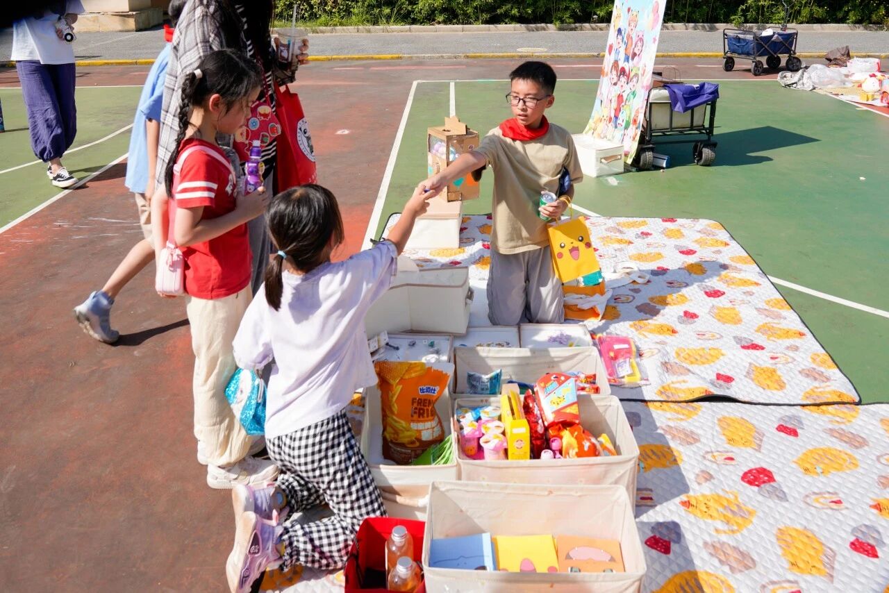 Though only some parents volunteered to assist this year's third-grade students, every group prepared diligently, aiming to run the most popular stall at the sale. The scorching heat couldn't dampen the students' enthusiasm for selling. Their calls echoed across the track—some invited classmates from other grades to shop at their booths, others sold handmade crafts, while some offered activities like raffles and smashing golden eggs. Thanks to the efforts of every student and parent volunteer, the fair unfolded in full swing, with young shoppers leaving with big smiles and bags full of treasures.