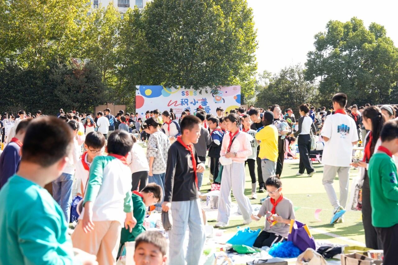 As autumn arrived, the annual charity fair of Shanghai Starriver Bilingual School was successfully held on October 24th. Students from grades 5 to 9 gathered on the campus, bringing a variety of handcrafted items they had prepared—some made necklaces, some spent weeks weaving Chinese knots, and some created beautiful paintings. The soccer field was soon covered with a dazzling array of goods.