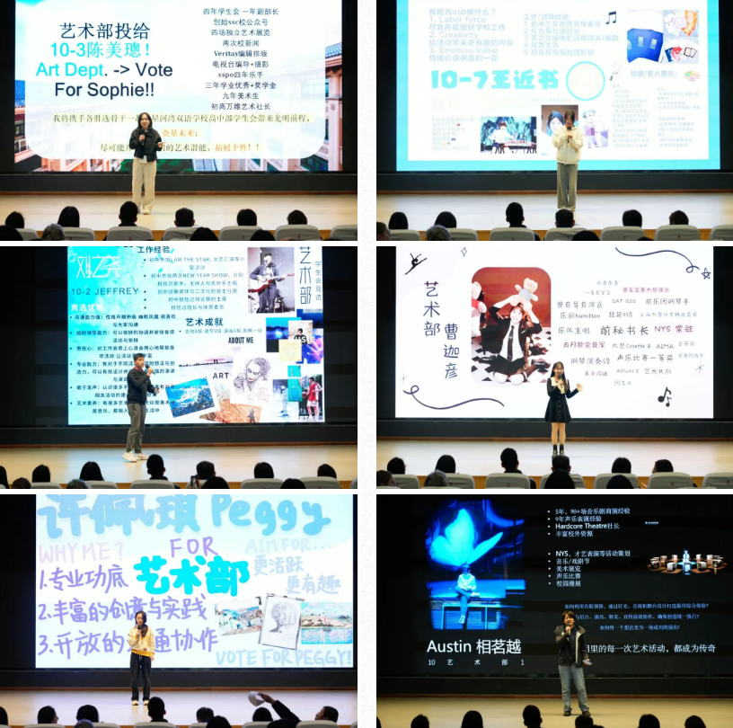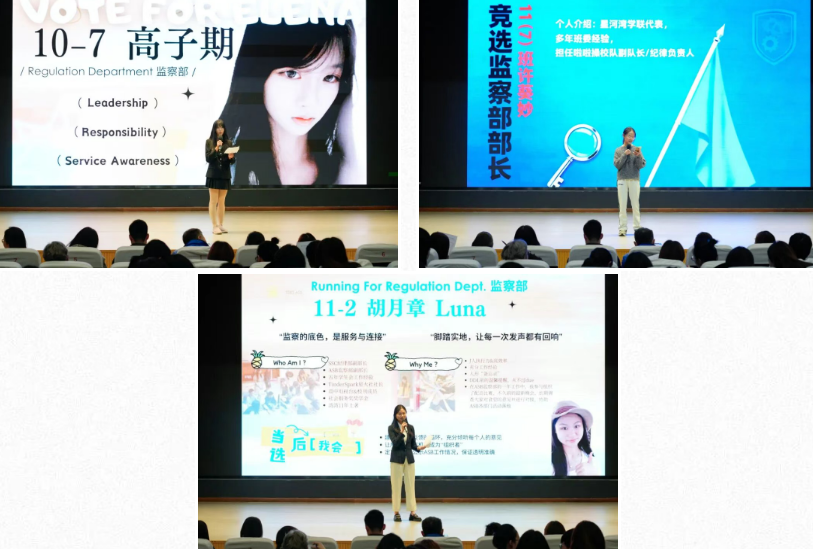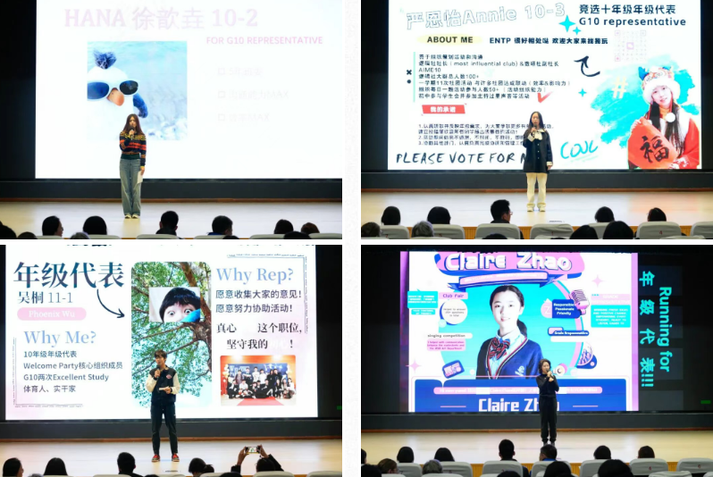 The election began with the candidates of Grade Representatives. They demonstrated their outstanding communication and organization skills and expressed their determination to enhance connection among students.