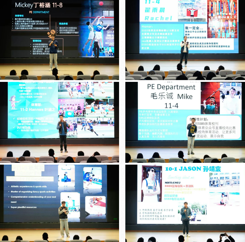 接下来十位体育部候选人的登场,展现了他们活力与才华并存的青春风貌。候选人中不仅有各项运动的长期热爱者,更有校队主力、纪录保持者和体育联赛的策划者。还有的候选人一展歌喉,感染了台下的观众。每一位参选者都希望为全体同学争取更丰富的运动资源与更广阔的运动舞台,让体育成为每个人校园生活的一部分。