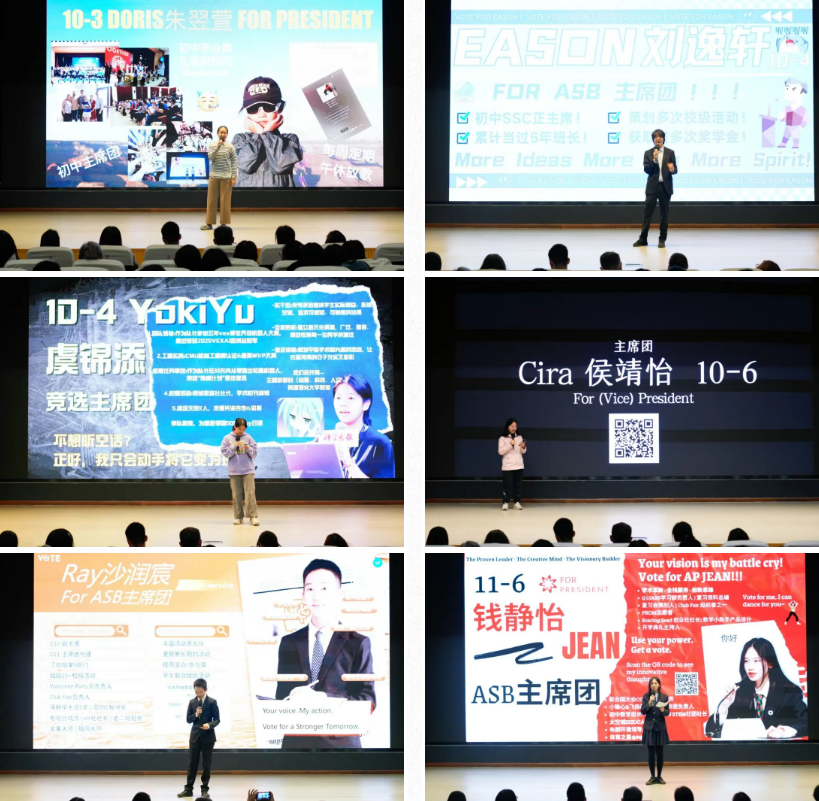 历时两小时的选举,是一次充满愿景的接力。聚光灯下,我们看见了许多熟悉面孔的成长与坚守,也看见了众多新同学的热枕与激情。韶华不负,未来可期。 责任的交接棒已经郑重传递到新一届ASB手中。我们坚信他们可以与全校同学携手共进,为校园生活谱写更加精彩的篇章,做出更大的贡献!