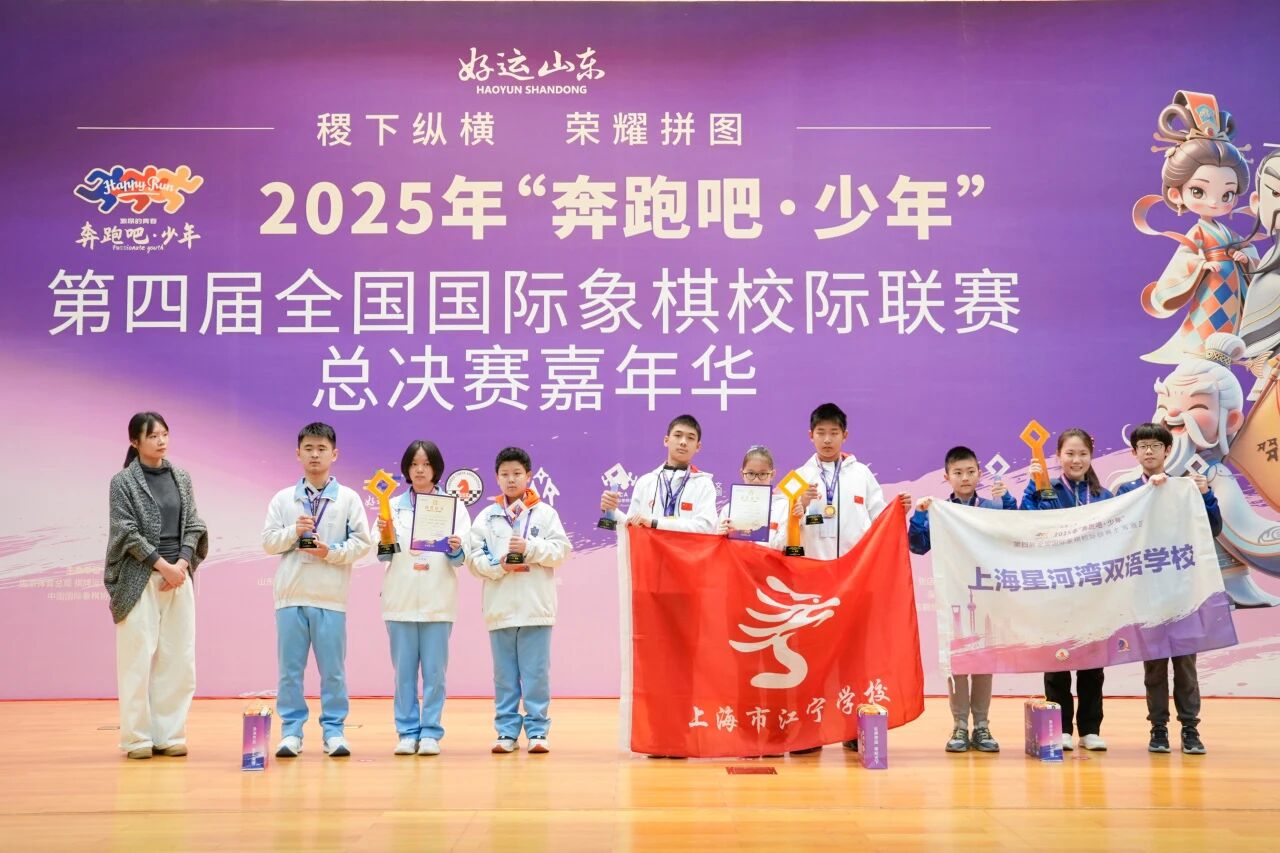 棋盘上智慧交锋,三位小将沉着应战,为学校荣誉写下生动注脚。在2025年“奔跑吧·少年”第四届全国国际象棋校际联赛总决赛中,我校王攸冉、郑隽、薛添好三位同学组成的代表队经过激烈角逐,最终荣获初中组第二名的优异成绩。