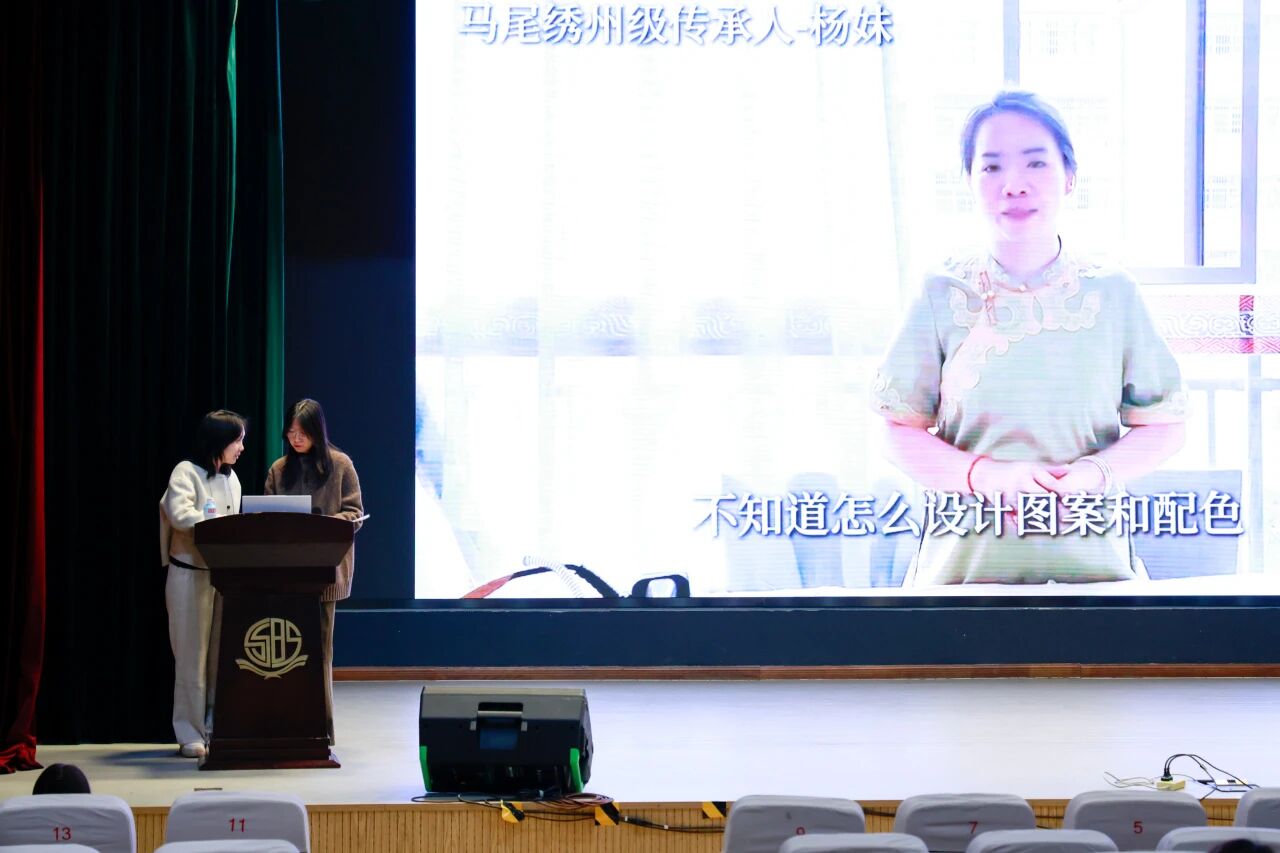 At the end of the lecture, the two speakers issued an initiative to all teachers and students to jointly protect and promote intangible cultural heritage, which was met with warm applause. Reflecting on the experience, Tian Ziheng shared, “During our study in the villages, the embroideresses taught us their skills without reservation, hoping that this art form could be seen by more people. We want to do our part—even if it starts with a sincere lecture like this.”