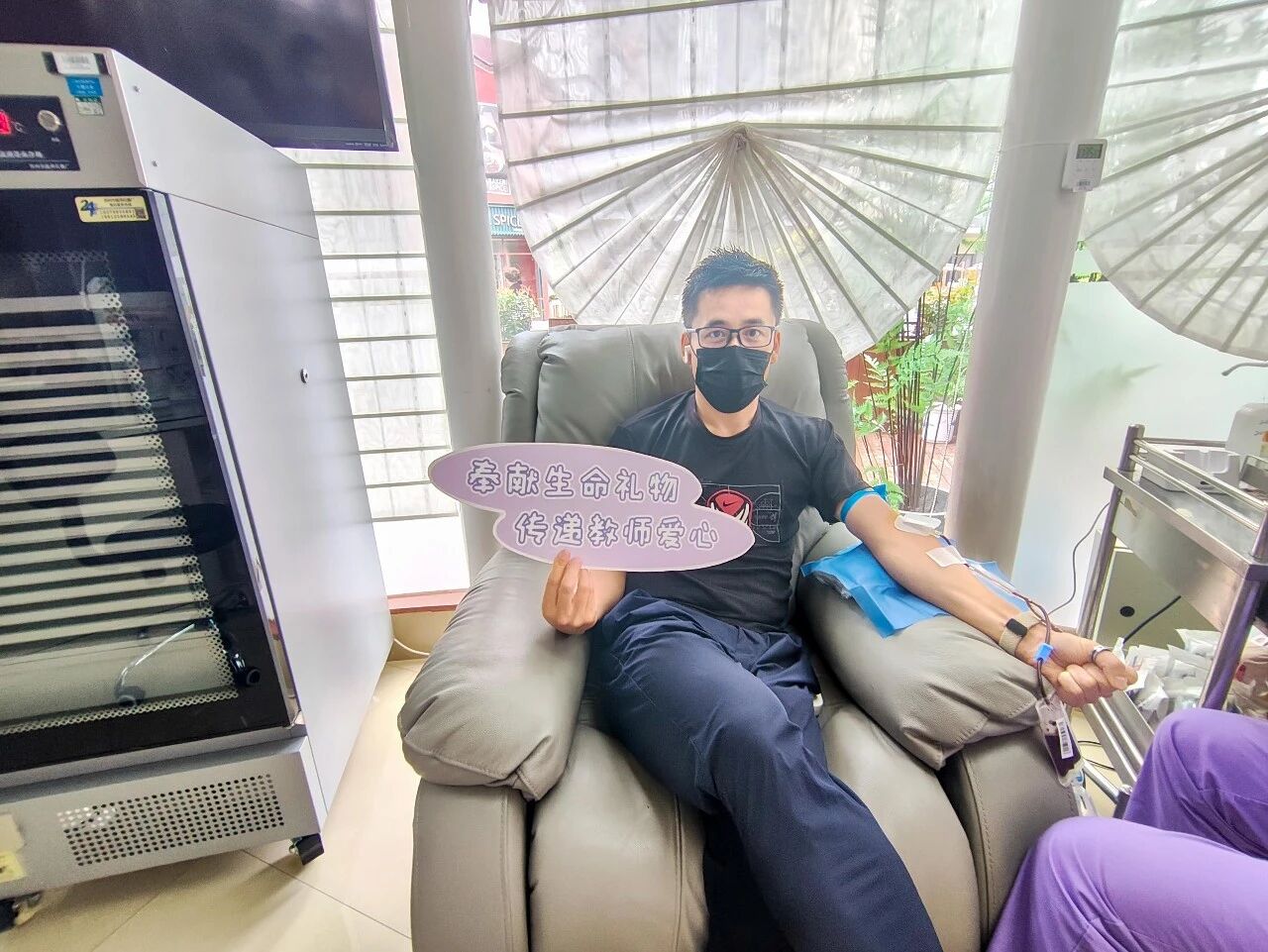 献血现场,老师们以平和而坚定的态度参与其中。这不仅是一份鲜红的血液,更是一份对生命的郑重承诺。本次活动中,倪桢东、薛安康、董伊凡三位老师参与无偿献血,每人献血200毫升。