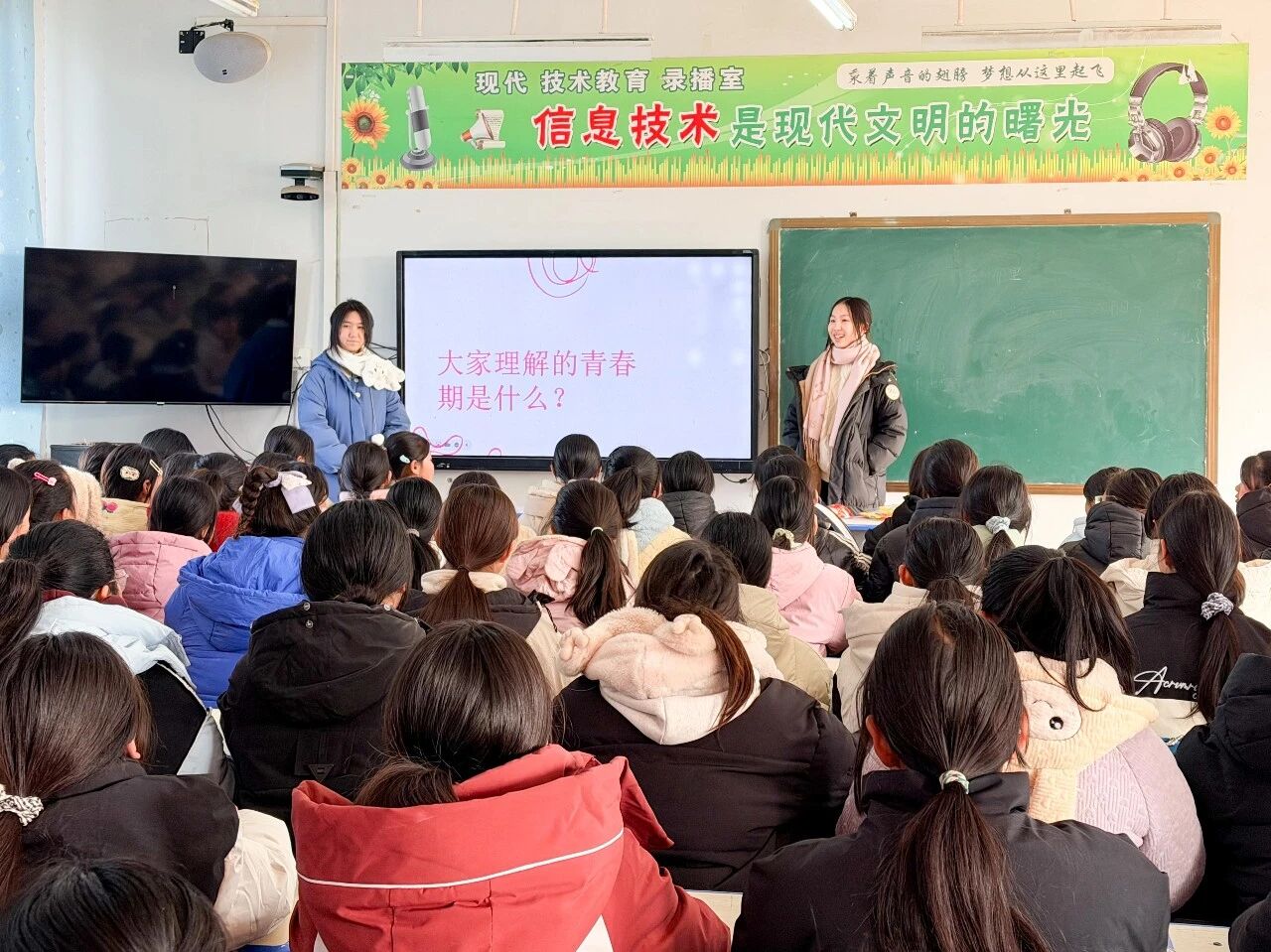 The physical and mental health lesson was taught by Liu Chencheng and Liu Junyao and offered specifically to fifth- and sixth-grade girls. They began with the discussions of the physical and psychological changes during puberty, helping students better understand the uncertainties they may experience during this stage of growth, providing insight into methods of coping with change, and guiding them toward developing a strong sense of self-protection.
