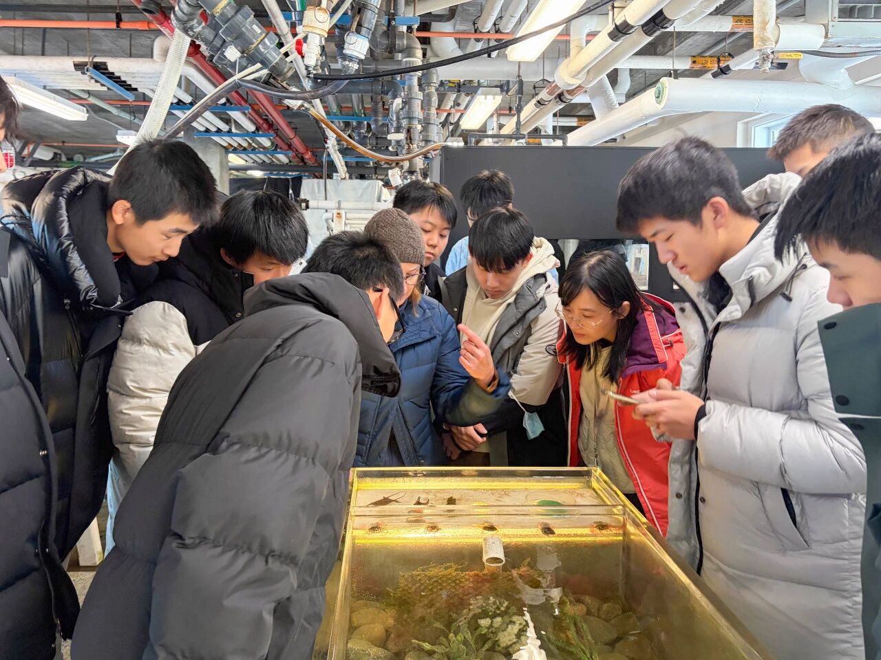 本次的课程以“水质”这个主题拉开序幕。Dr. Abbo通过讲座系统阐述了维持水生生态平衡的关键,随后带领同学们亲自动手,铺设滤材、装点珊瑚、引入海水,最终迎来了海星、海参与小鱼这些 “室友” 。每日清晨,检测水温、pH、氨氮、亚硝酸盐、溶解氧等指标,成为学生们的日常仪式。数据曲线的每一次波动,都牵动着大家的心,也直观演绎了水缸中氮循环的微观进程。在最后一天的总结汇报中,学生们记录的不仅仅只是简单的水质参数,还加入了水缸里的居民列表,每天居民的伤亡情况等细节,对异常结果进行分析。Dr. Abbo 为每组汇报进行了点评,也指出了一些不足之处,比如需要多次测量以排除操作失误和一些更加合理的解释。