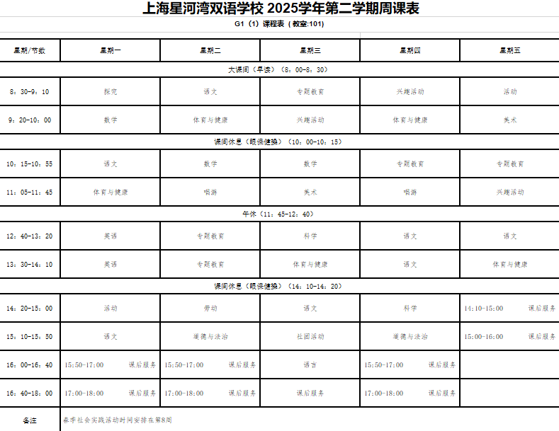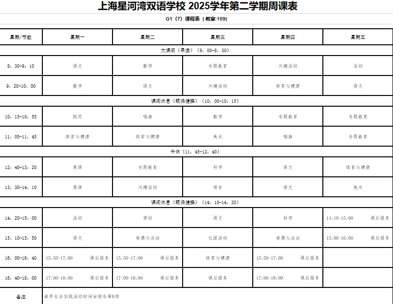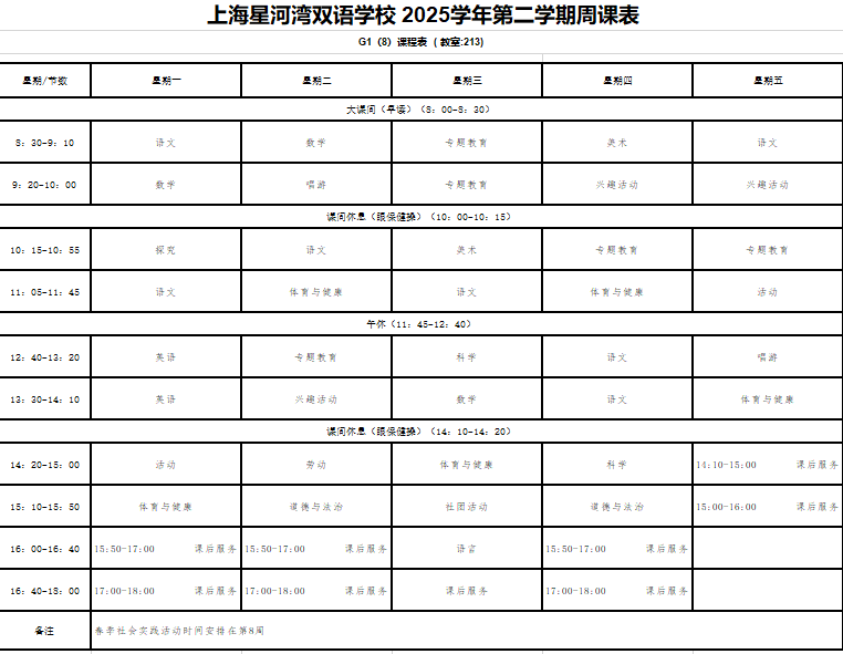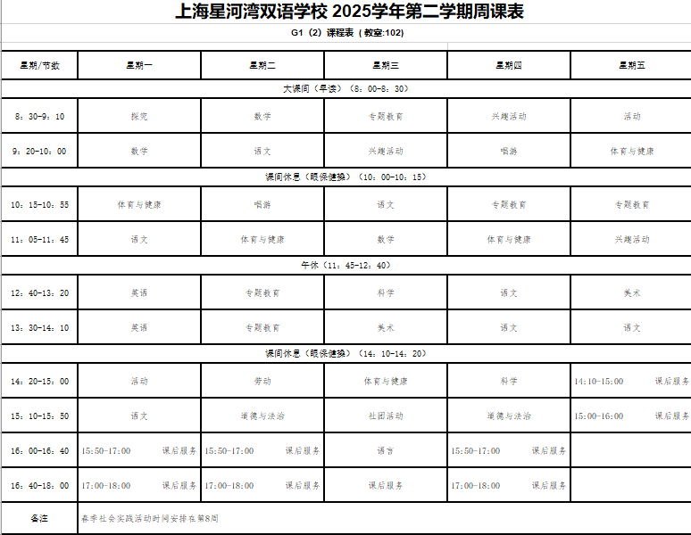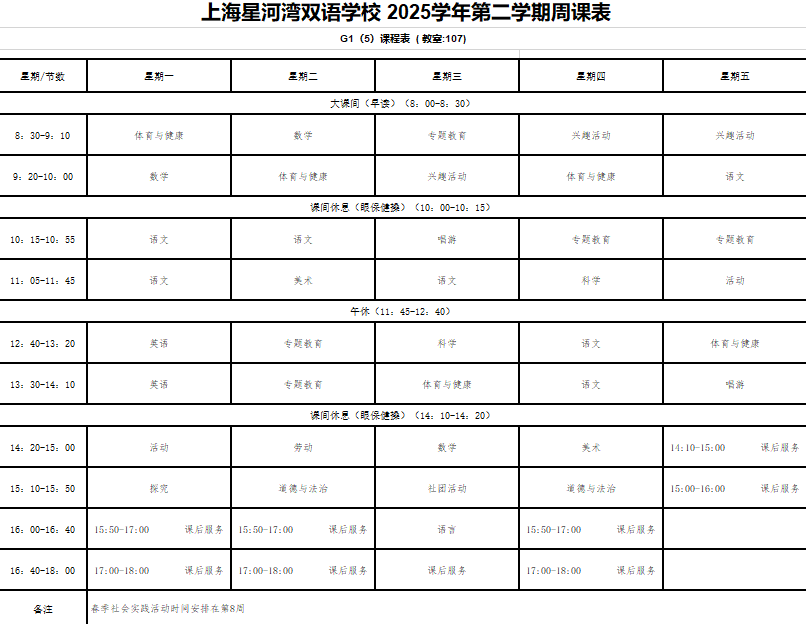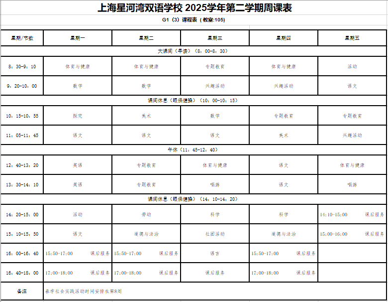 晒课表-2025下-一年级课表