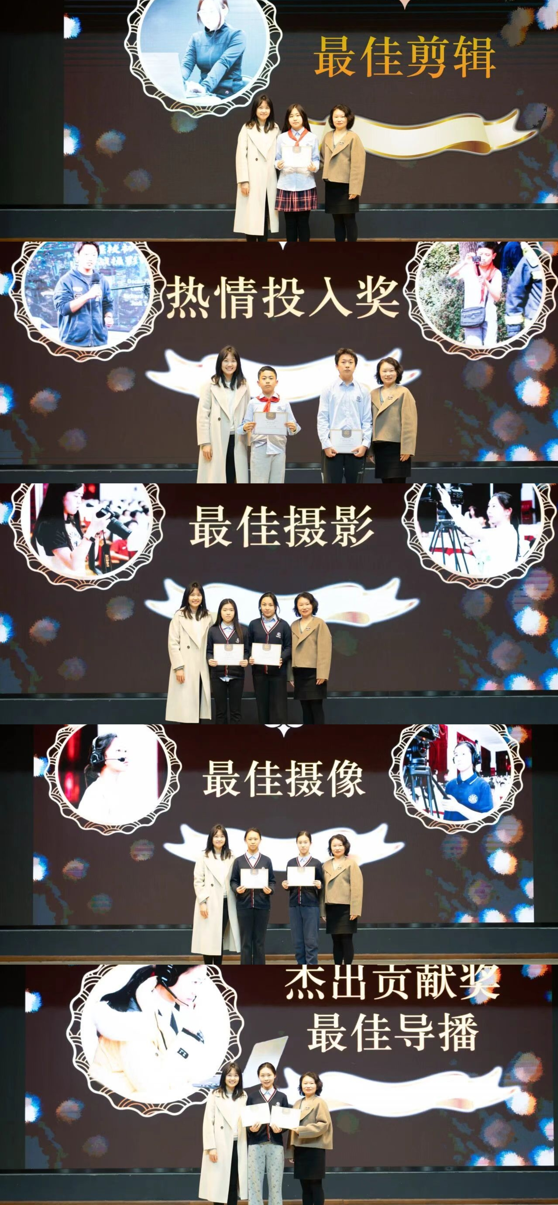 随后,“星”闻中心的杨冰劼老师带领大家回望了上个学期大家共创的成就。校园生活的点点滴滴都被细致地记录在青春篇章里:有欢声笑语,有奋力拼搏,有努力进取,有互帮互助。一篇篇优秀的推文和新闻稿在抓住事情本质的同时,又赋予了文字生动的色彩和蓬勃的力量,让读者观而悦,读而感。可谓是字字珠玑,句句琳琅,篇篇锦绣。马旦叶校长、吴乐乐主任、年级新闻指导老师为获奖新闻员颁奖。