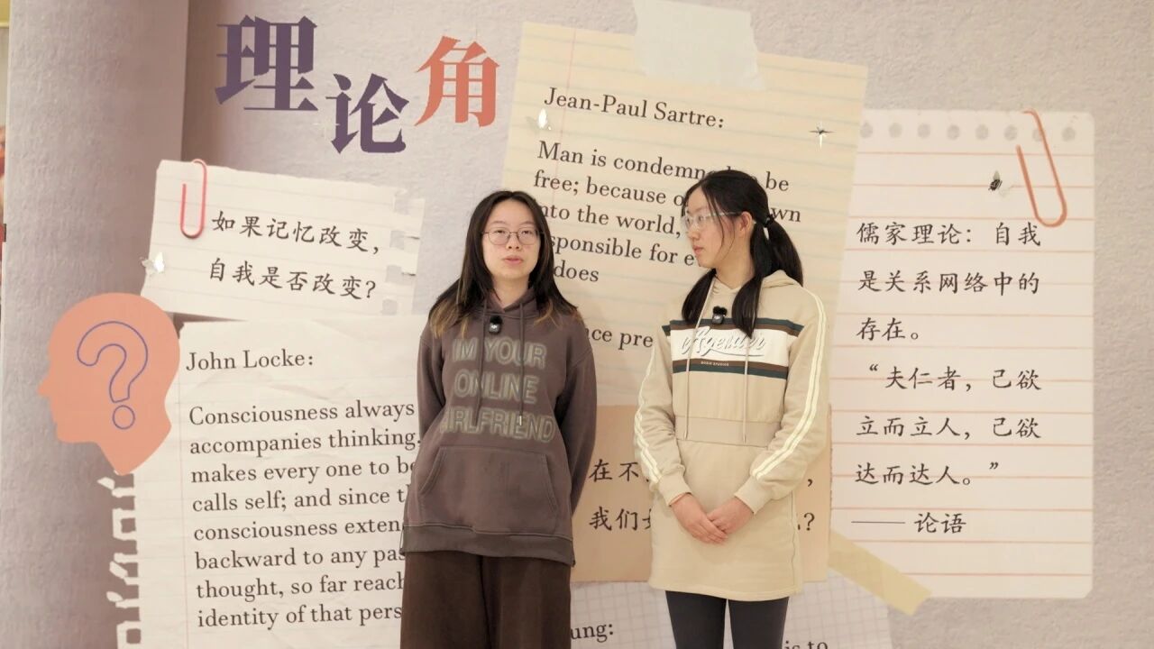 近日,一场名为“自我认知与跨文化经验”的哲学展览在星校高中部4楼中庭举办,它由 11-7 班曹佳妍、曹钦媛,11-3 班张瑞馨以及 Skepsis 哲学社全体成员共同策划举办。展览没有给出标准答案,而是向观众抛出了一个核心哲学命题:自我是本质永恒的“定数”,还是在环境激荡中不断流变、重塑的“过程”?
