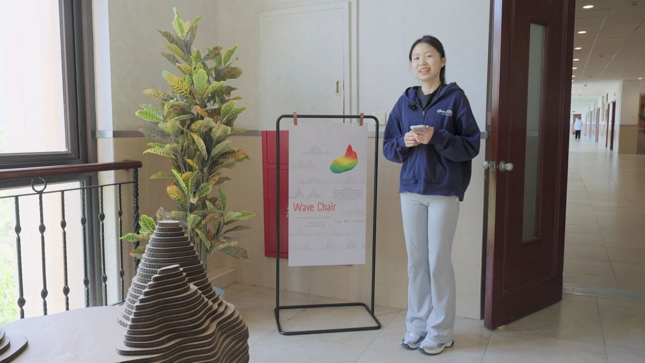If the first exhibition is an exploration of traditional culture, the second brings design directly into campus life. Mary initiated this project after noticing that the campus lacks comfortable and welcoming spaces for rest and informal interaction. Most existing chairs in classrooms and public areas are functional but rigid, failing to fully support students’ needs for relaxation and communication. As a result, she designed a wave-shaped chair that fits campus environments and creates a more holistic, human-centered experience.