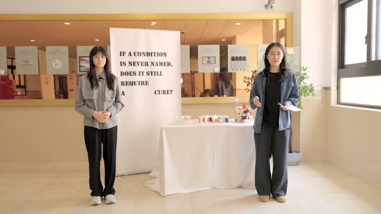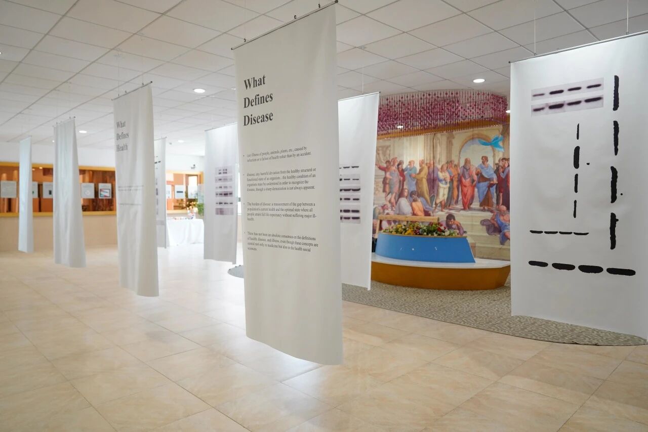 近日,11 年级 5 班的黄毅雯策划的“When does life become a disease”展览在校园内展出。展览融合生物科学、医学语境与艺术表达,通过互动装置与文本艺术,引导观众进入对”疾病“这个主题哲学化的思考场域。