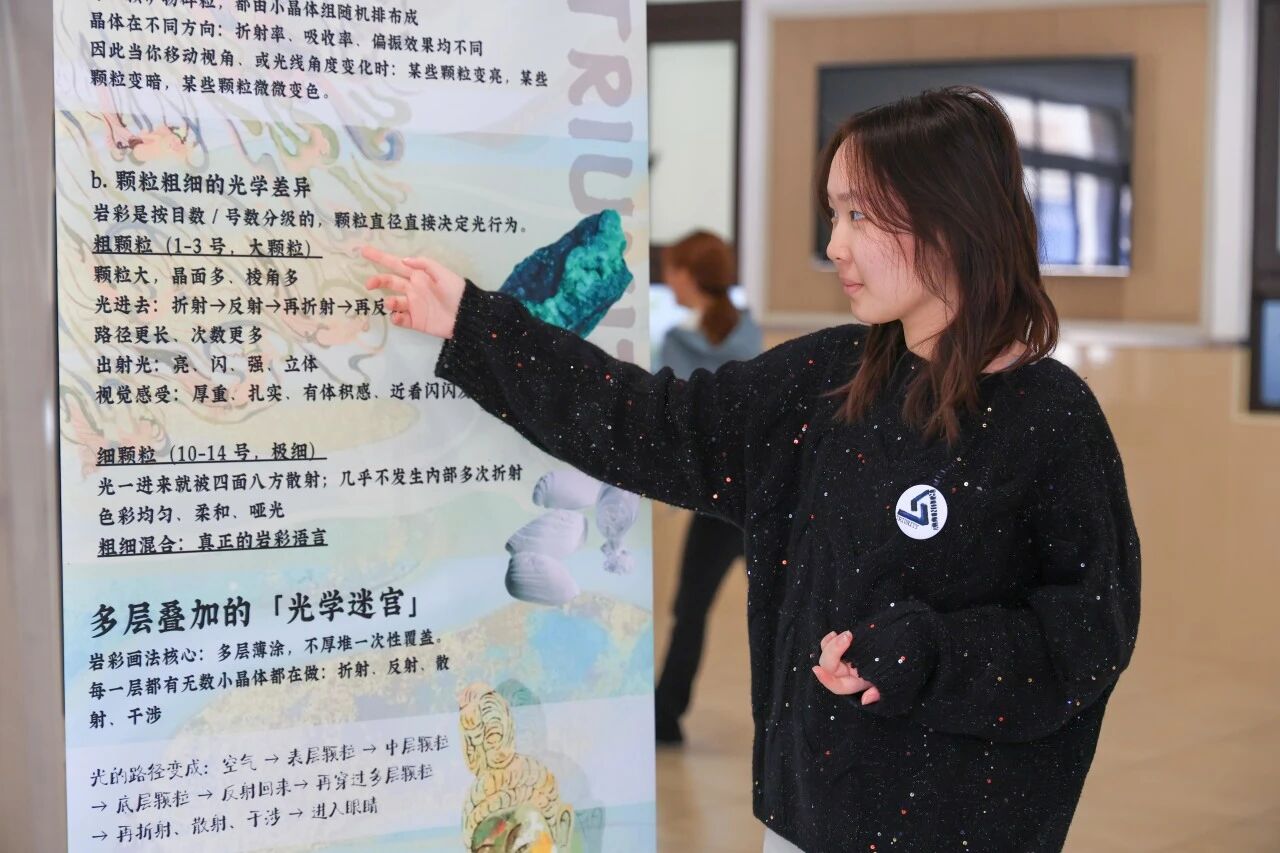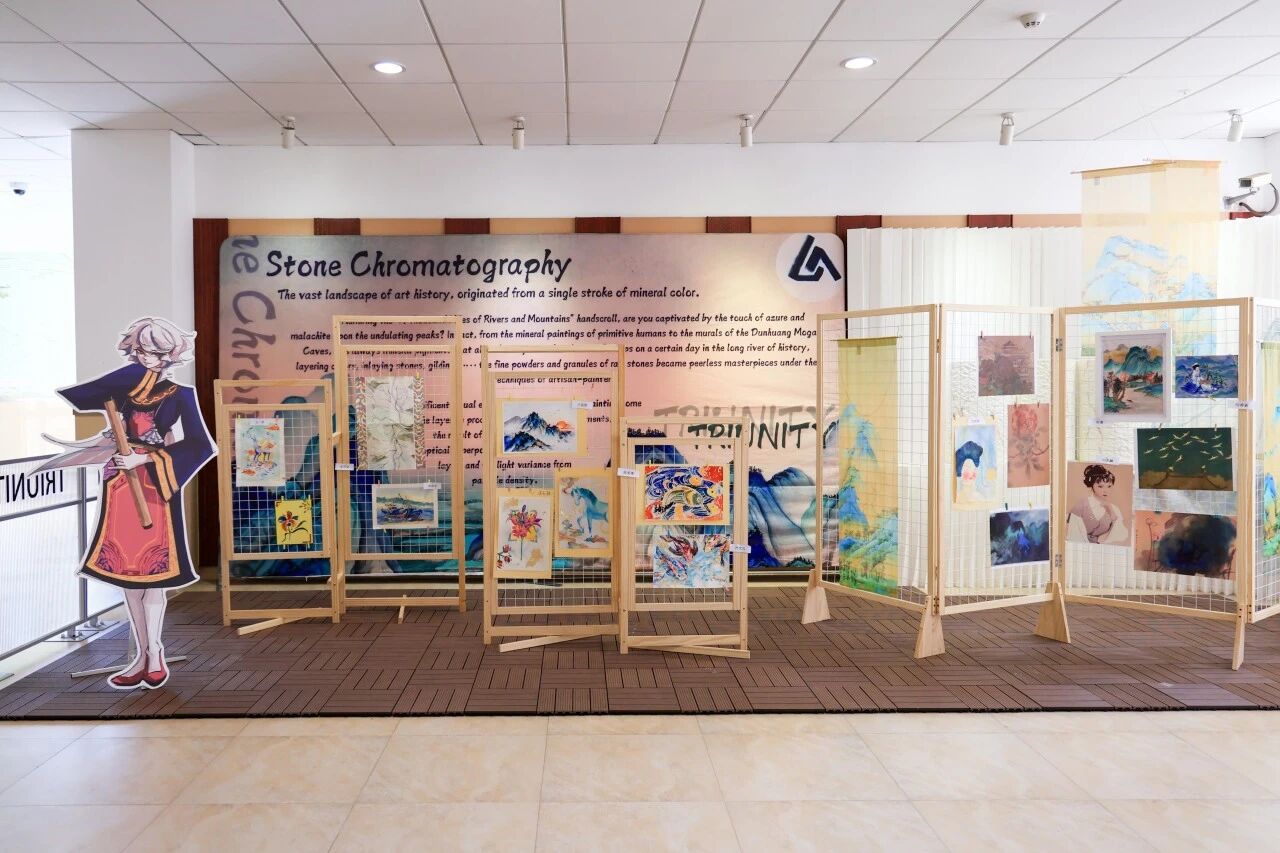 3月23日,由我校艺术组老师策划指导,万维艺术社团联合初、高中热爱艺术的同学,举办了名为“山水岩”岩彩非遗艺术展。本次展览介绍了岩彩知识与技法,展示了学生岩彩作品,并融入了物理光学知识科普,为师生揭开岩彩颜料经久不衰,质感独特背后的奥秘,探索非遗艺术与科学的融合。